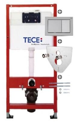 TECE Pachet de WC TECEbase cu rezervor Base, inclusiv clapetă crom, set de izolație fonică și sistem de fixare, instalare la H 1.12 m (9400006)
